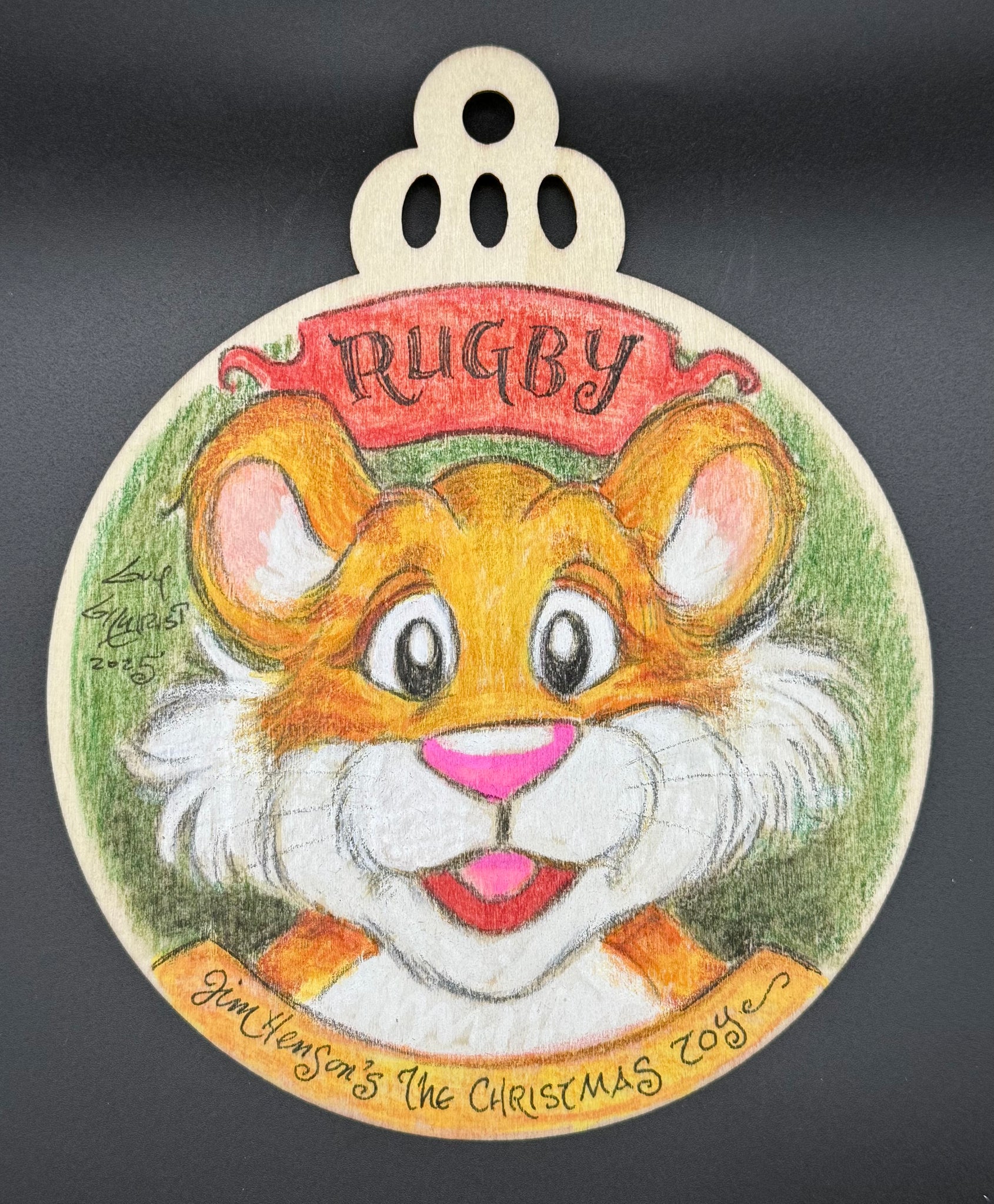 5 inch wooden ornament, hand drawn by Guy Gilchrist. Comes with certificate of authenticity.